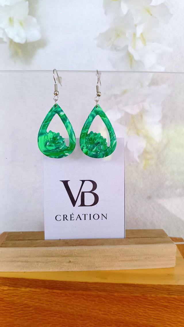 Boucles d'oreilles marguerite marbrées marrons noires moutardes et or