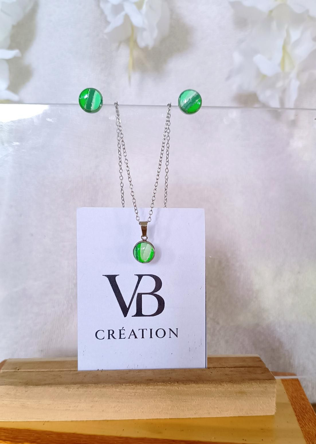 Parure puces marbrées vertes