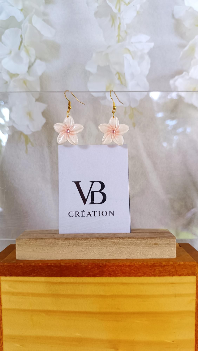 Fleurs de tiaré nacrées centre rose