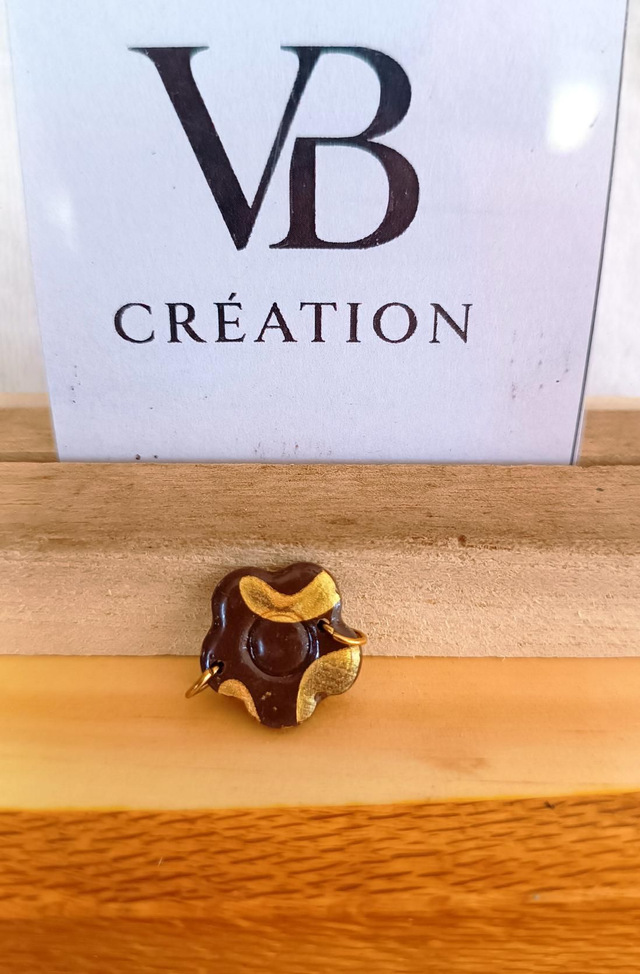 Petite pampille bracelet doré fleur marron et or